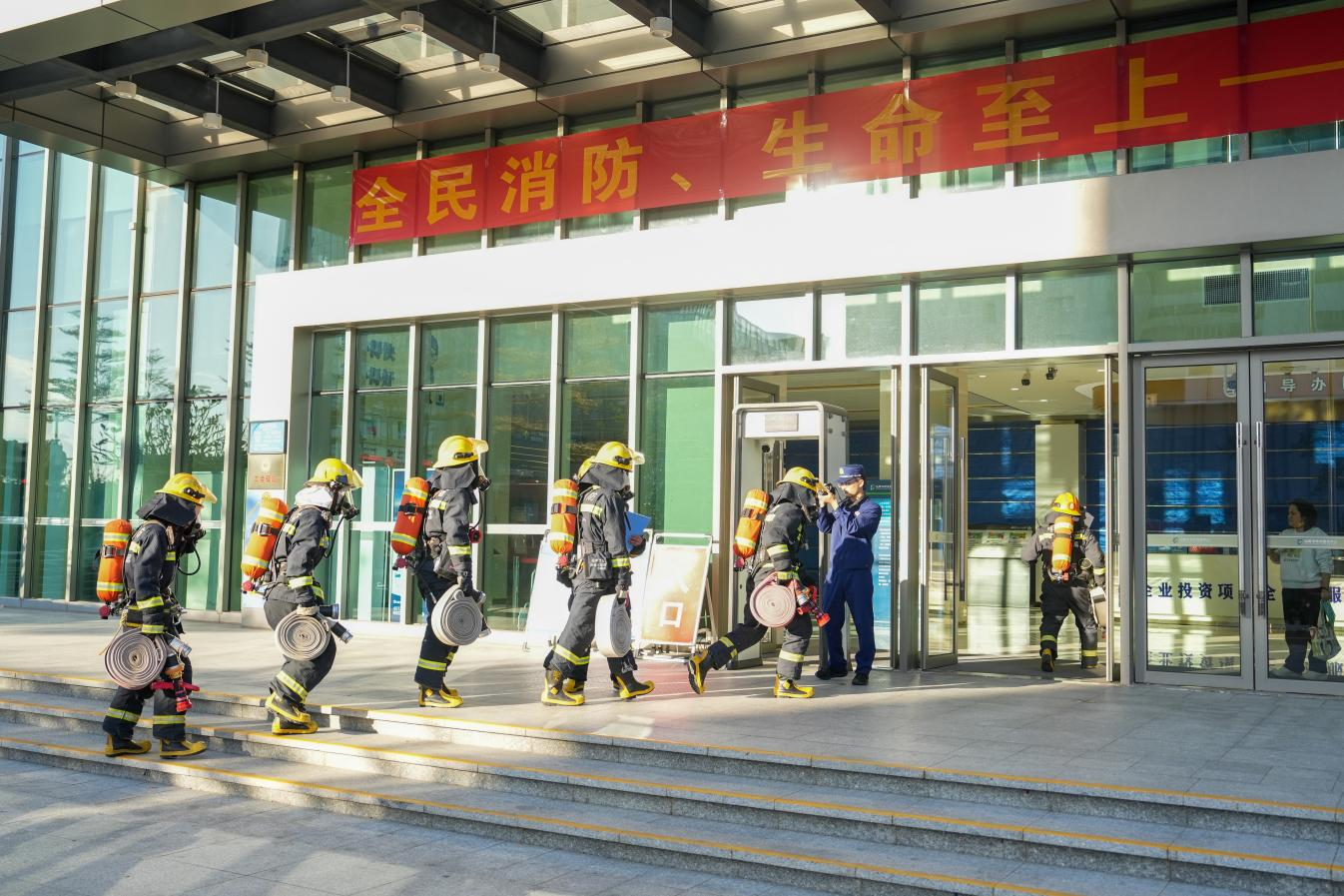 汕尾市市民服务广场开展2025年消防应急演练